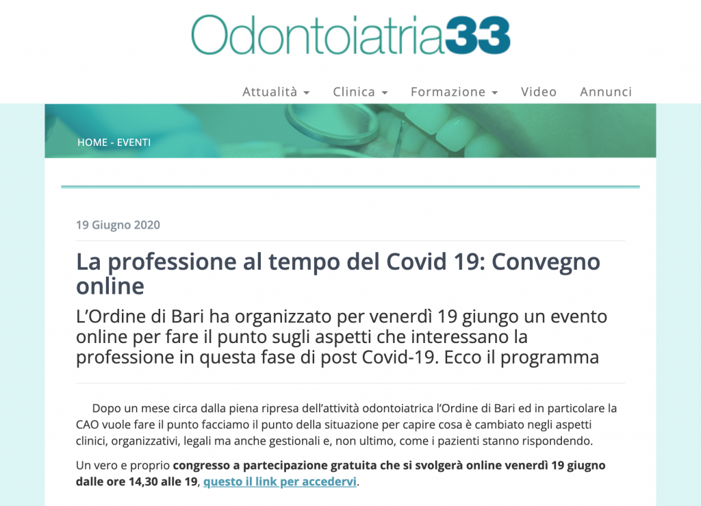 Diritto sanitario “La professione al tempo del COVID-19: Convegno Online” – Convegno online, Giugno 2019StaffGennaio 31, 2022