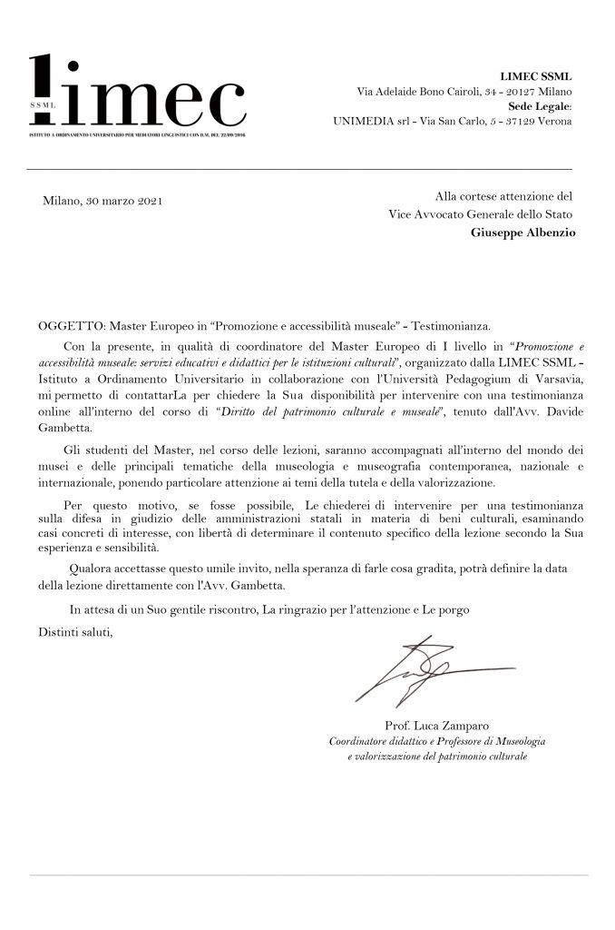 Diritto dei beni culturali e dello spettacolo Limec Master 2021 su “Promozione ed accessibilità museale”StaffGennaio 31, 2022