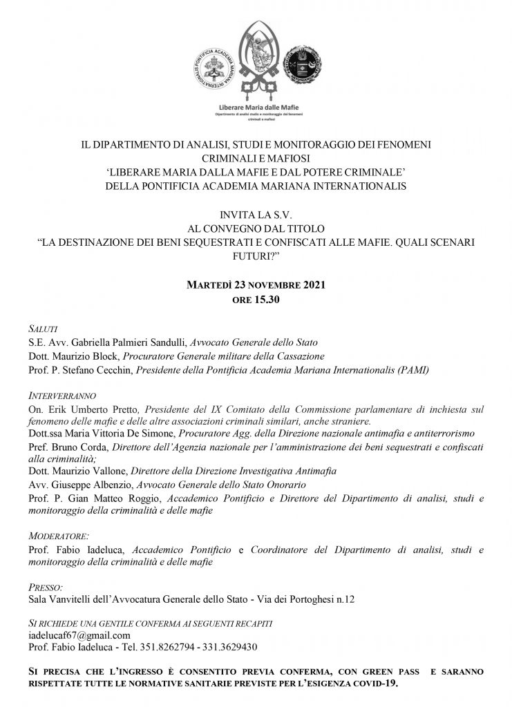 Diritto dei contratti e dei lavori pubblici Convegno Pontificia Academia 2021 su “Destinazione dei beni confiscati alle mafie”StaffGennaio 31, 2022