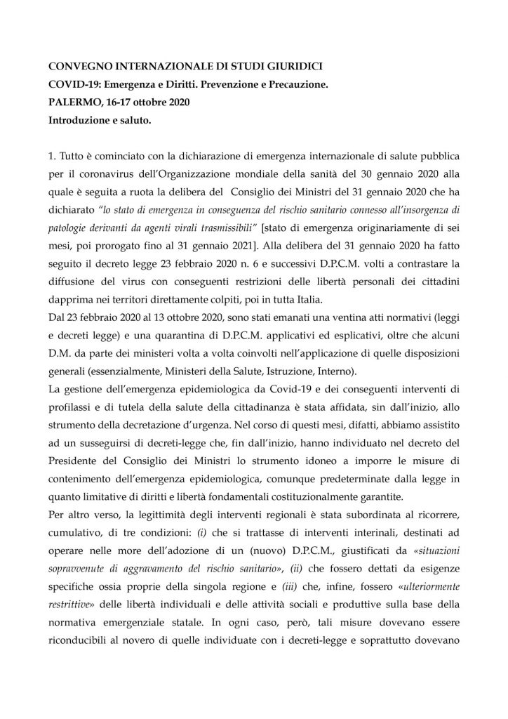 Diritto dei contratti e dei lavori pubblici “COVID-19: Emergenza e Diritti. Prevenzione e Precauzione” – Convegno internazionale di studi giuridici – Palermo, 2020StaffGennaio 31, 2022