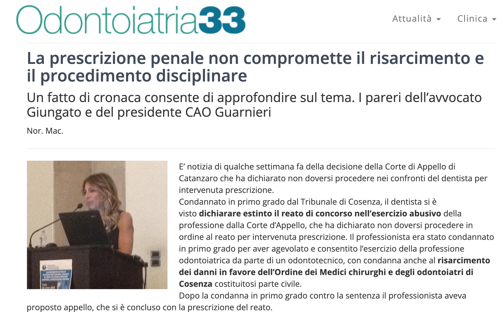 “La prescrizione penale non compromette il risarcimento e il procedimento disciplinare”- Odontoiatria33, Novembre 2019