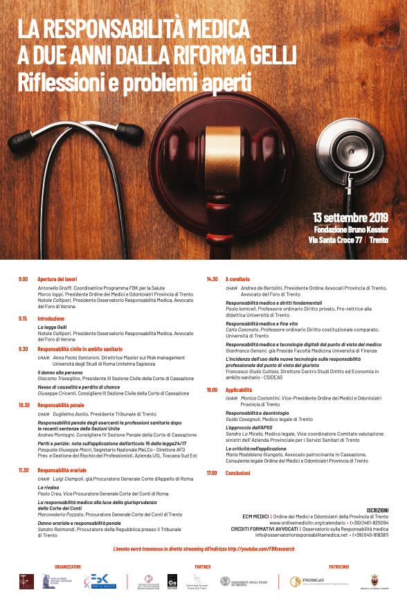 “La Responsabilità Medica a due anni dalla riforma Gelli” – Convegno, Settembre 2019